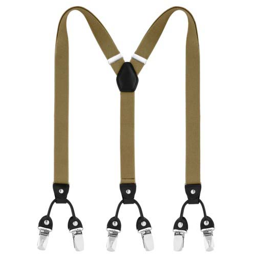 Ce modèle est équipé de fines bretelles élastiques de couleur olive et d'un design classique en Y au dos, ainsi que de détails de finition en métal argenté et simili cuir noir. De solides pinces antidérapantes maintiendront votre pantalon parfaitement en place et lui éviteront de souffrir de la loi de la gravité. Portez-les seuls ou avec une ceinture : à vous de choisir.